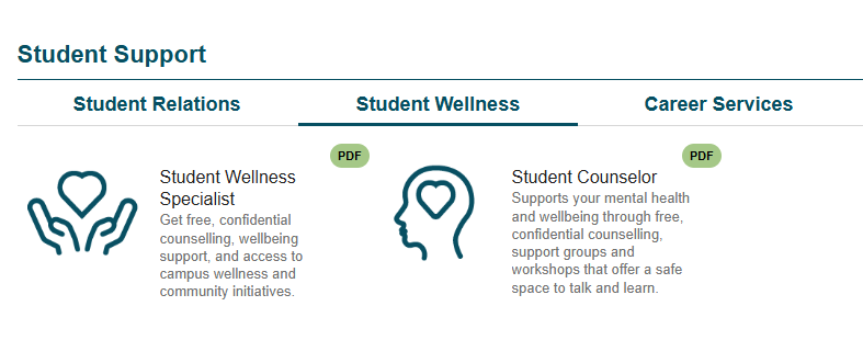 The Student Wellness Specialist/ Counsellor offers a range of psychological and counselling services to students, including psychological issues, personal concerns, interpersonal issues, and crisis intervention services. The Student Wellness Specialist offers short-term, psychological, and preventative intervention that focuses on supporting and promoting the wellbeing of students