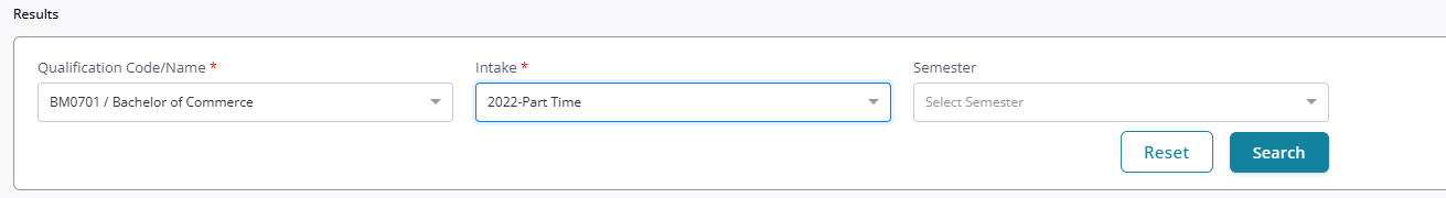 3. Select your qualification, intake and current semester then click search: