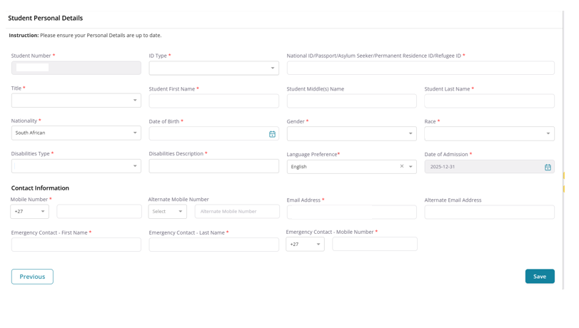 Updating your personal information is important to ensuring you receive important information from us. This is done on your Student Portal