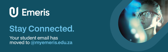 Your new student email address is [your student number]@myemeris.edu.za and your password remains the same and will continue to be used with this new address. Please note that your previous student email address can no longer be used to sign in.