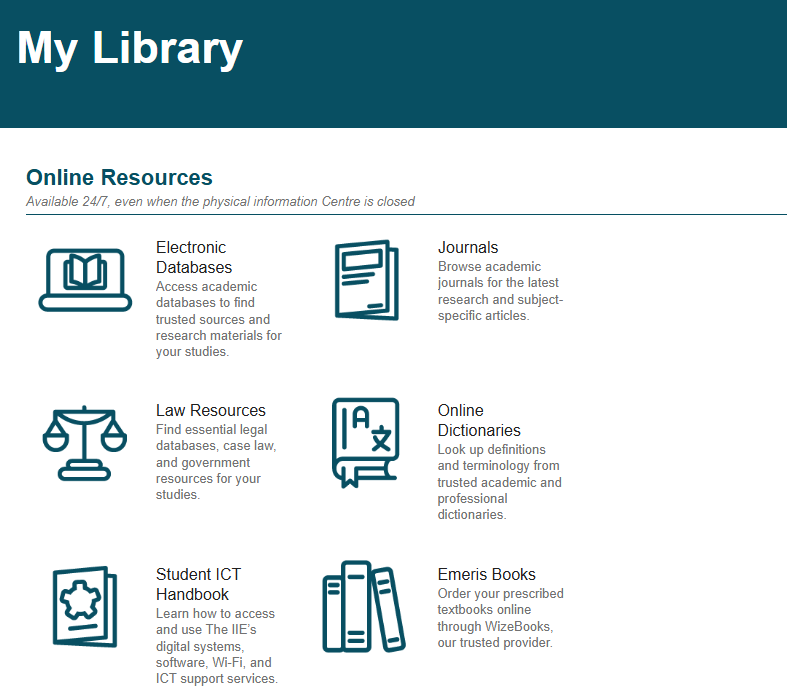 Journal articles can be obtained via online databases which can be accessed via "Library Services" directly on MyEmeris.